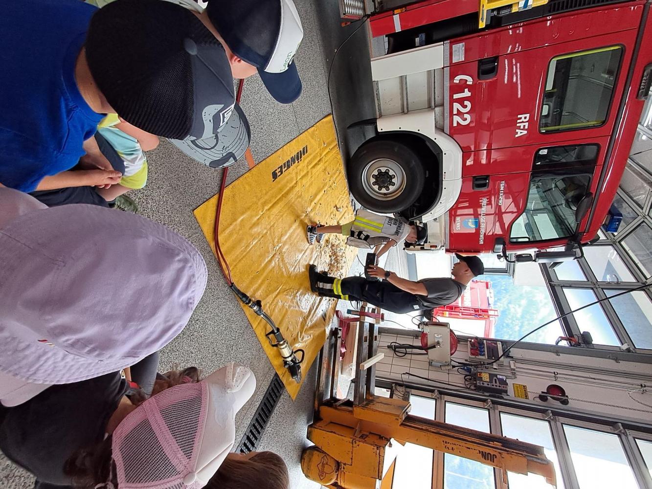 Am 27.06.2025 hat uns wieder die Feuerwehr zu sich eingeladen. Ein abenteuerlicher Stationenbetrieb ließ die Kinderaugen leuchten. Sogar mit dem Feuerwehrauto durften die Kinder mitfahren! Fleißig wurden alle Stationen bespielt und zum Schluss gab es Würstchen mit Brot und Getränke als Stärkung. Auch die Polizei schaute vorbei und ließ die Kinder das Auto genauer begutachten.