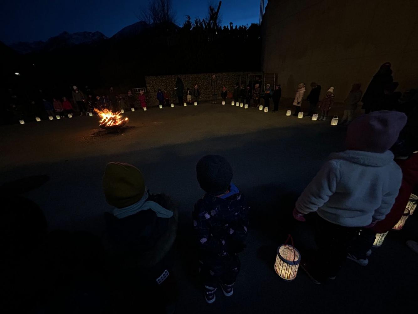 Auch dieses Jahr fand unser Martinsfest in Zusammenarbeit von Kinderkrippe und Kindergarten statt. Wir zogen mit unseren Laternen durchs Dorf bis zur Feuerwehrhalle. Dort lief ein kleines Programm, bestehend aus Liedern und einer kurzen Geschichte. Anschließen ließen wir den frühen Abend mit Kinderpunsch und Laugenbrezen ausklingen. Ein herzliches Danke für die Unterstützung der Feuerwehr, die eine Feuerschale vorbereitet hatten, welche für eine besondere Atmosphäre sorgte und ein großes Danke an unseren Elternbeirat für die tatkräftige Unterstützung.